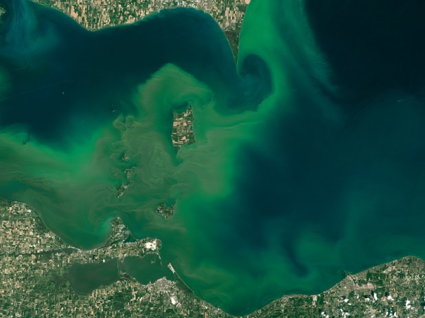 Satellite image of algae bloom in Lake Erie summer 2015 (via IJC)