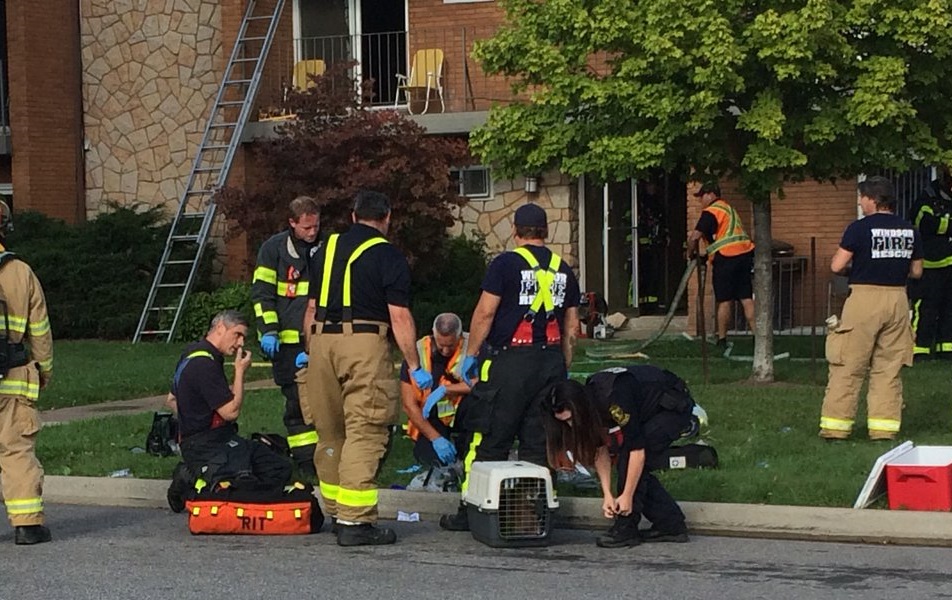 Windsor Fire crews at apartment fire on Rivard Ave (Photo by AM800's Rob Hindi)