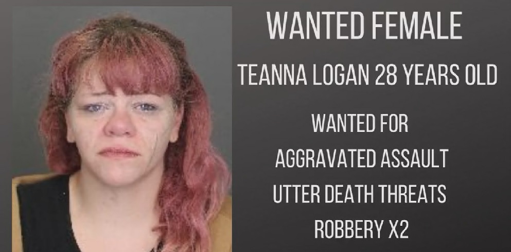 28-year-old Teanna Logan is wanted on charges of aggravated assault, two counts of robbery and uttering death threats. She's described as white, approximately 5'9 tall, with a medium build and dyed long red hair. She is also wanted for allegedly robbing the same victim earlier that same day.