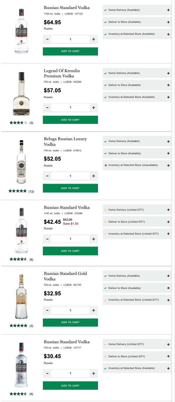 The LCBO is one of the world's largest buyers of booze, importing alcohol from 80 countries and carries at least six brands of Russian vodka.