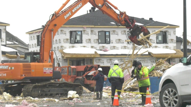 Crews have started to clear away piles of debris following Monday's explosion at a construction site in Orleans. (Katie Griffin/CTV News Ottawa)