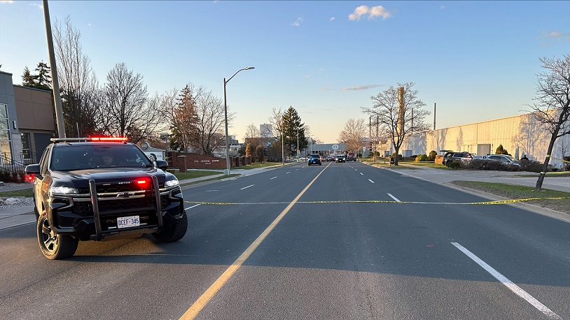 Ontario Provincial Police say a pedestrian was struck by a motor vehicle and was pronounced deceased at the scene.