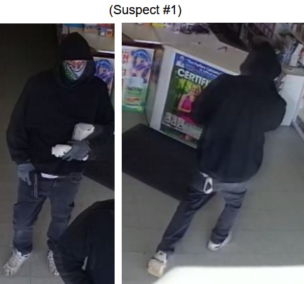 According to police, two white males entered the pharmacy demanding drugs and cash — one suspect was in possession of a black handgun.