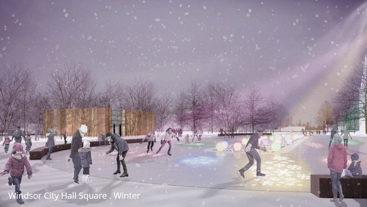 The construction of the ice rink and surrounding city hall area represents the first phase of the Civic Esplanade project which would see an area from City Hall to Windsor's riverfront redeveloped into more public spaces.
