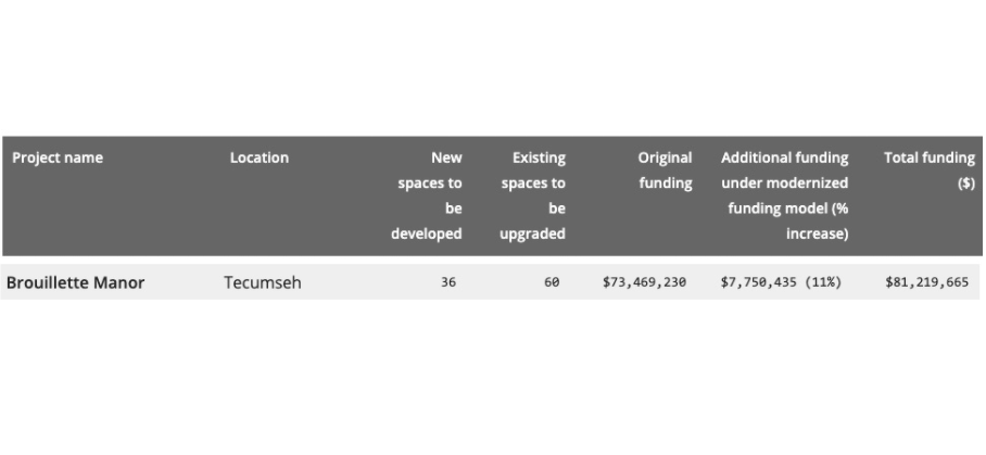 Thirty-six additional spaces will be developed at Brouillette Manor with 60 existing space to be upgraded.