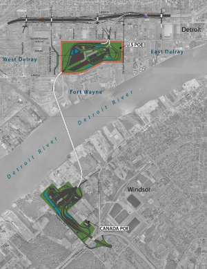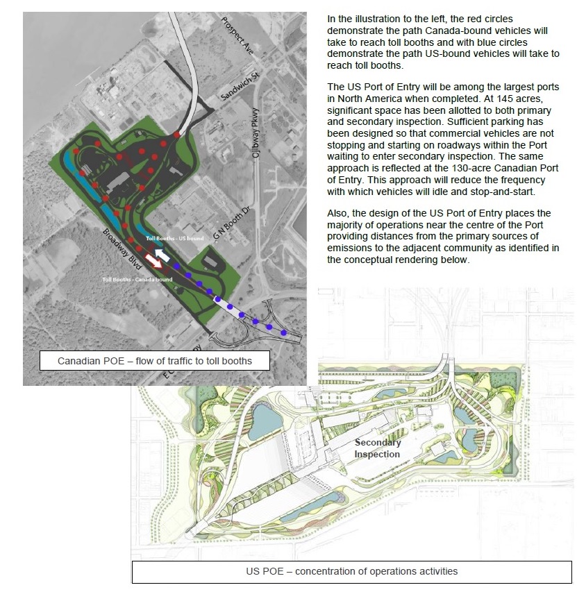 Planned customs plaza layouts for the Gordie Howe International Bridge. (Photo courtesy of the Windsor-Detroit Bridge Authority)