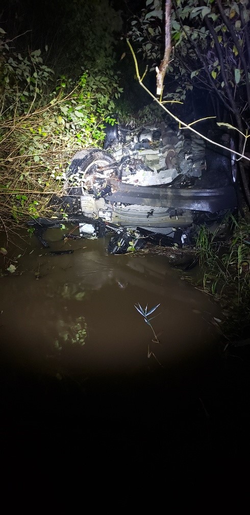 On Saturday, October 26th at 11:45pm, police responded to a crash on County Rd. 11 where a vehicle had overturned into a ditch and the driver was trapped.