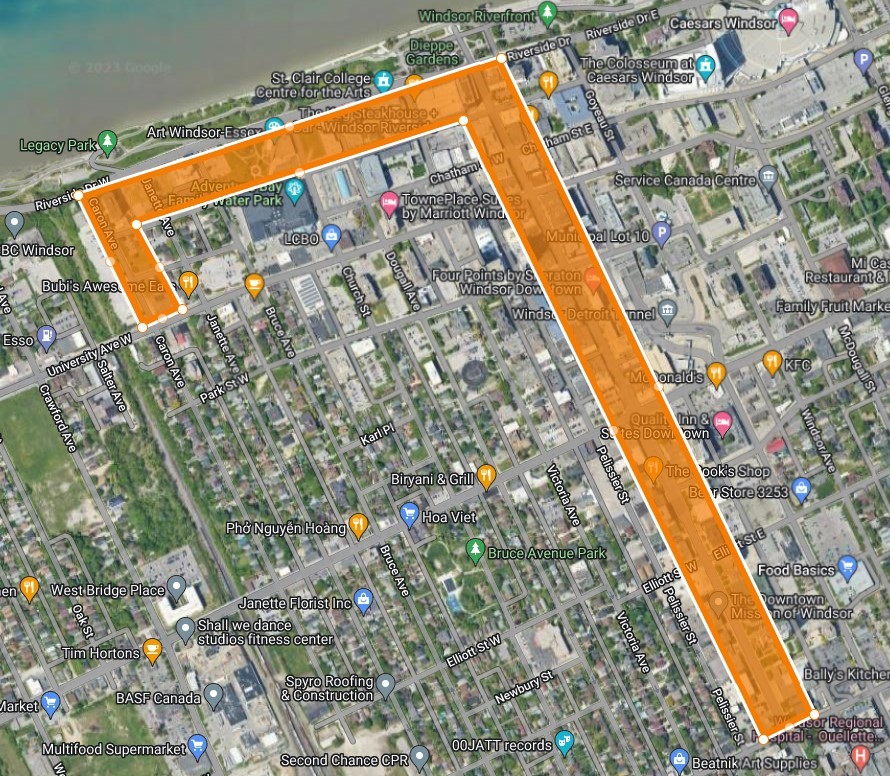 -Ouellette Ave. between Erie St. and Riverside Dr.