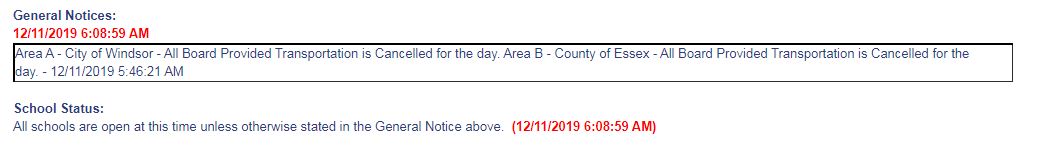All school board provided transportation is cancelld in the City of Windsor and Essex County.