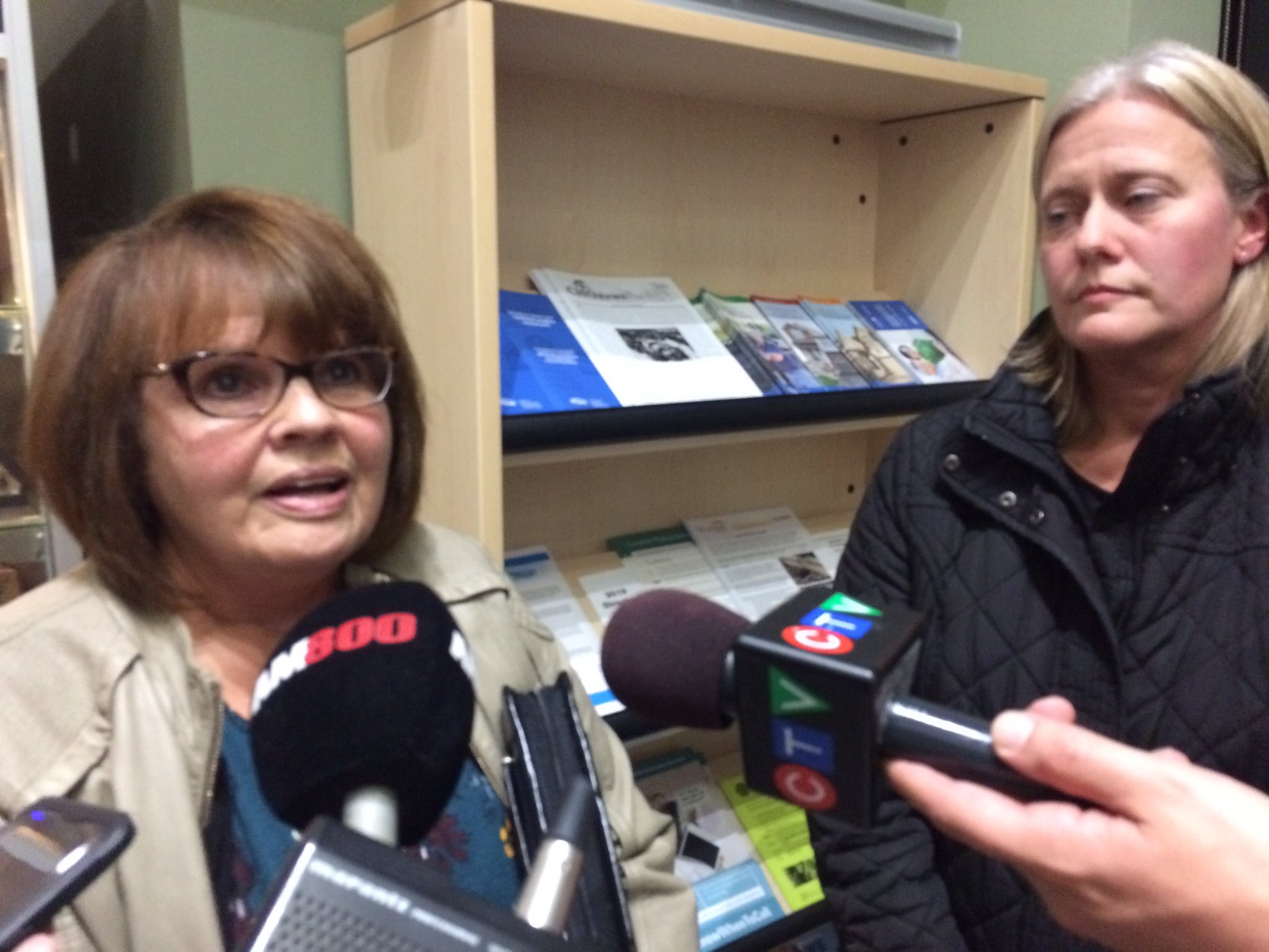 Oldcastle residents Judy Robson (left) and Celeste O'Neil (right) speaking about a proposed cannabis greenhouse in OIdcastle (Photo by AM800's Zander Broeckel)