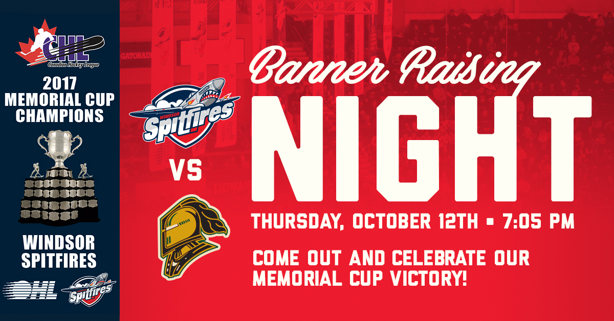 The Windsor Spitfires will raise their 2017 Memorial Cup championship banner before a game against rival London next month.