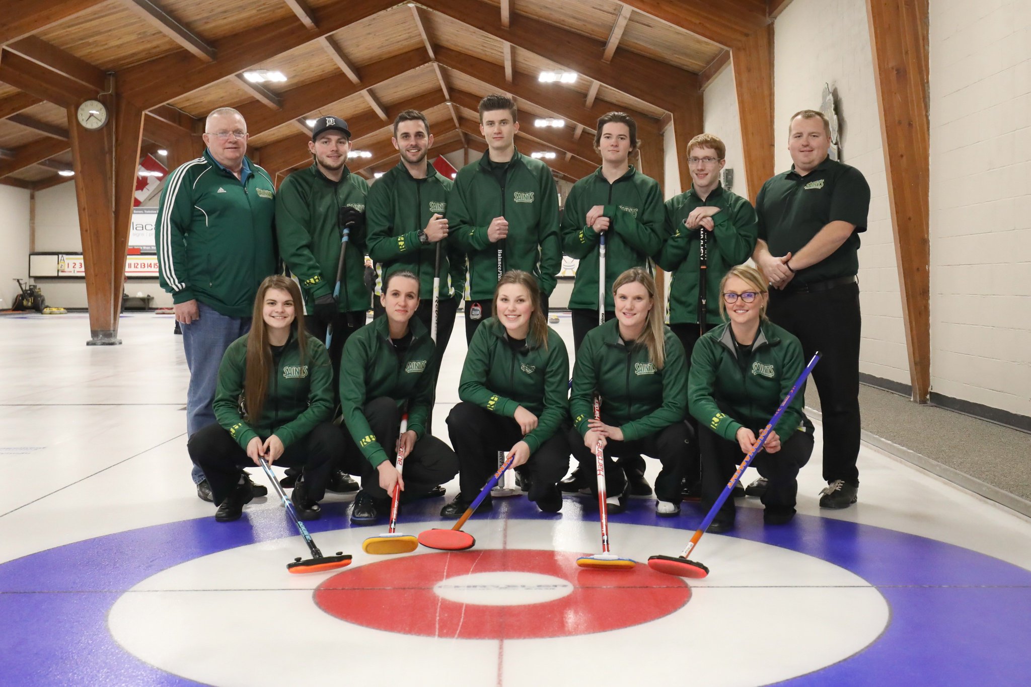 St Clair College curling teams photographed before heading to Sault Ste. Marie to compete in the OCAA Championship, February 7, 2018 (Photo courtesy of @stclairsaints1 via Twitter)