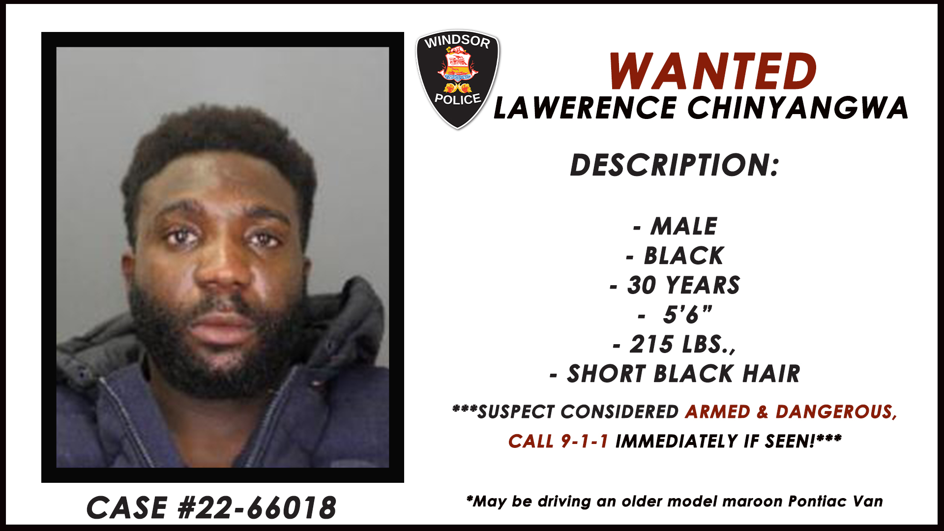 The Windsor Police Service is trying to locate Lawerence Chinyangwa, who police say should be considered armed and dangerous. July 27, 2022 (Image courtesy of the Windsor Police Service)