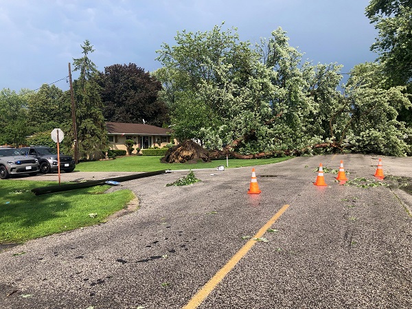 Fallen tree and light post following storm in LaSalle at the corner of Maple Avenue and Hazel Street. July 20, 2023 (Photo Credit: Courtesy of AM800's Rob Hindi)
