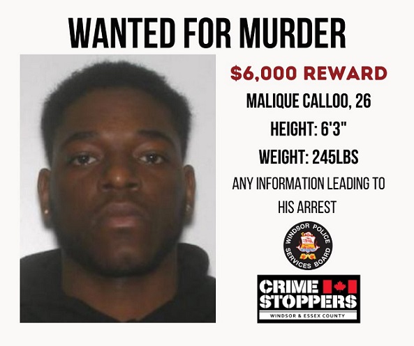 Malique Calloo, is wanted by Windsor police for first-degree murder of Daniel Squalls, 24, who was shot in the 800 block of Hanna Street East on Nov. 28, 2022.