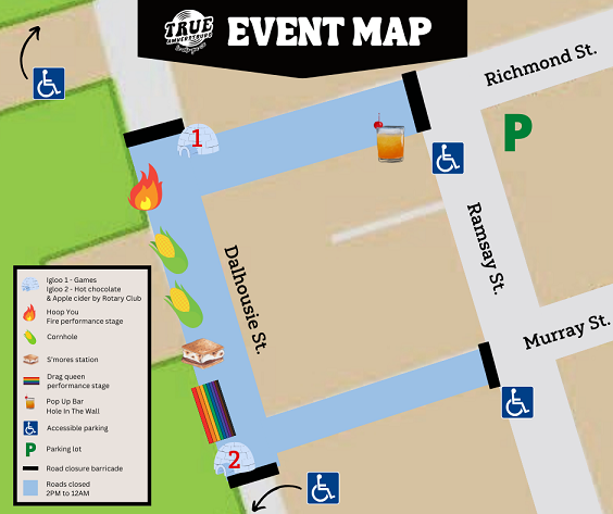 A map of events at Amherstburg's TRUE Festival. January 2024 (Photo Credit: Courtesy of Town of Amherstburg website)