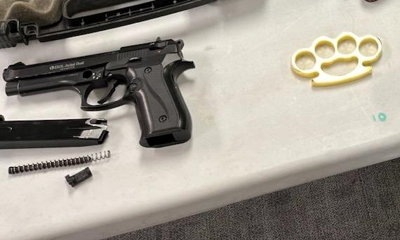 Windsor Police seize a handgun, among multiple other weapons, as part of an investigation in East Windsor. Jan. 16, 2023. (Photo Credit: Courtesy of Windsor Police Twiter)