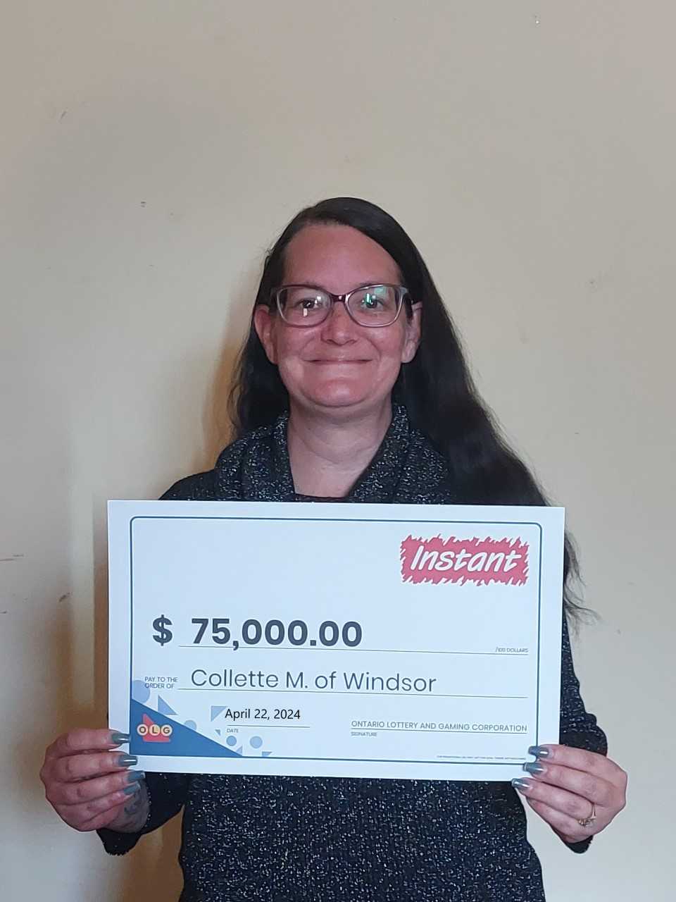Meantime, Collette Martin won $75,000 after winning the top prize with INSTANT GOLDEN DRAGON DELUXE.