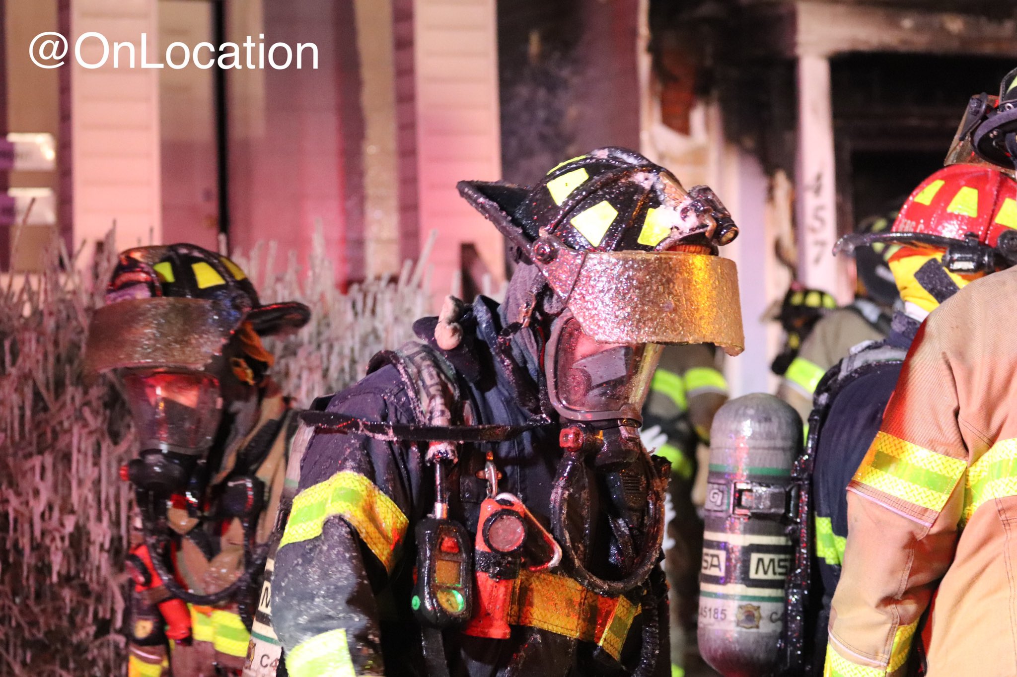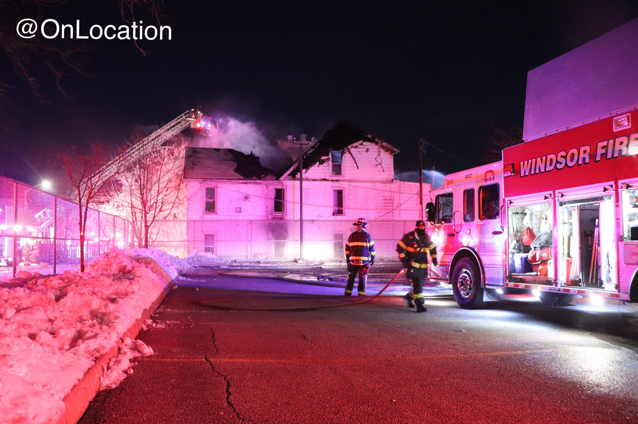 Crews with Windsor Fire and Rescue battle a fire in a multi-unit building in the 400-block of Church Street near Park Street West in Windsor. Two people were rescued from the fire and taken to the hospital for treatment. Feb. 7, 2021 (Photo courtesy of @_OnLocation_)