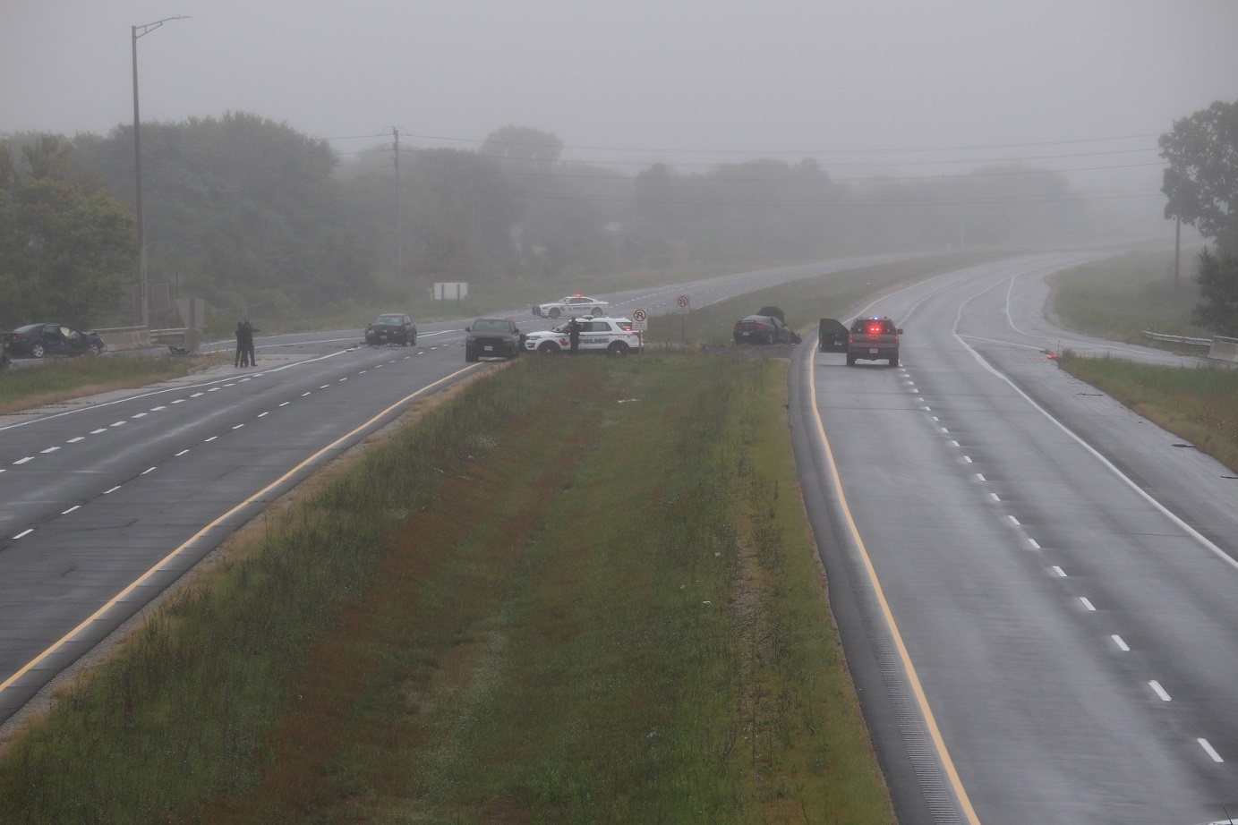 E.C. Row Expressway closed east of Lauzon Parkway from two vehicle crash, September 10, 2018 (by AM800's Peter Langille)