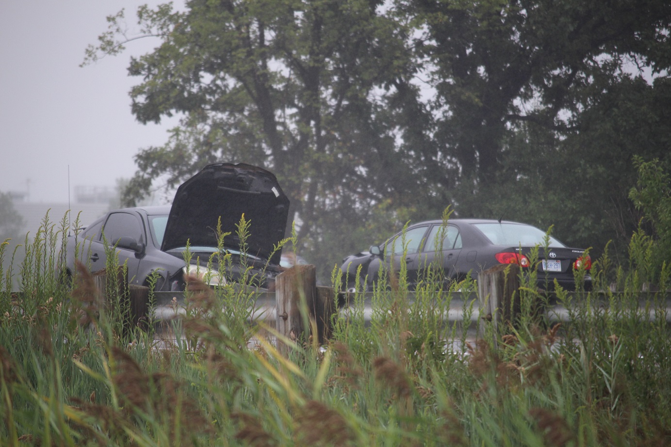 The two vehicles involved in the crash on the E.C. Row Expressway, September 10, 2018 (by AM800's Peter Langille)
