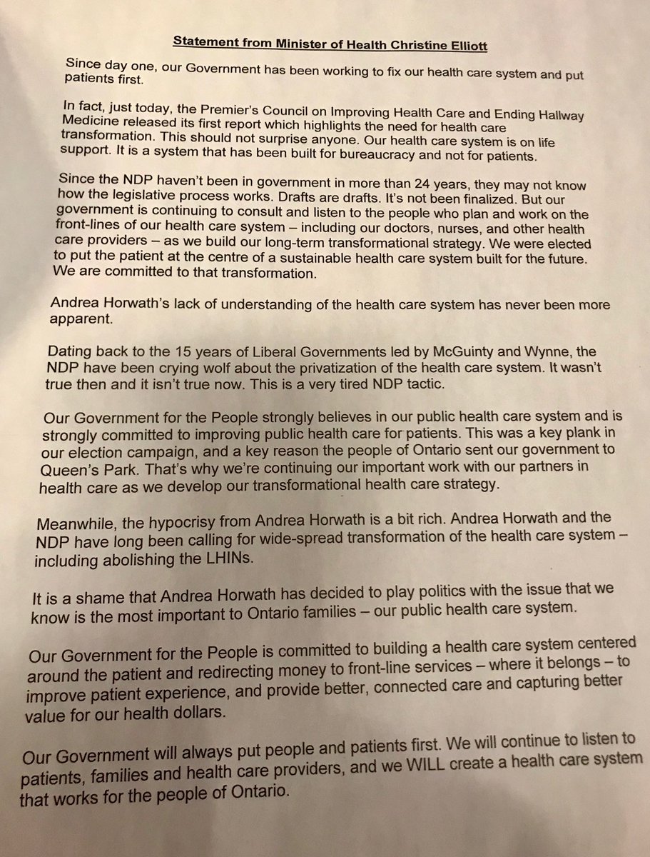 Statement by Health Minister Christine Elliot, January 31, 2019 (Photo courtesy of @cristina_CP24 via Twitter)