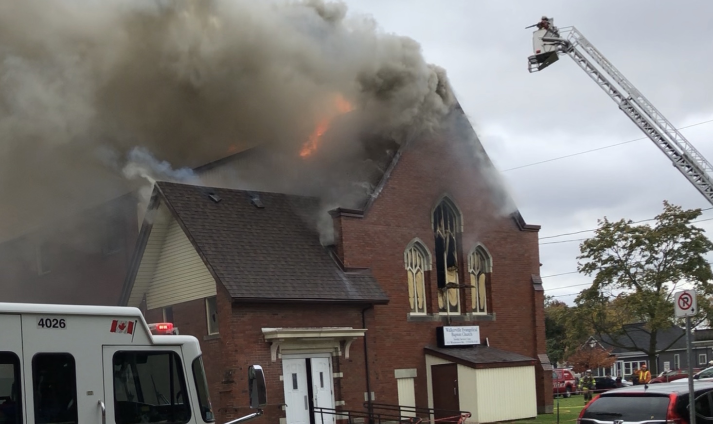 Windsor fire was called to the Walkerville Evangelistic Baptist Church at 815 Windermere Rd. just after 1pm. Firefighters arrived to find an inferno with heavy smoke bellowing into the air.