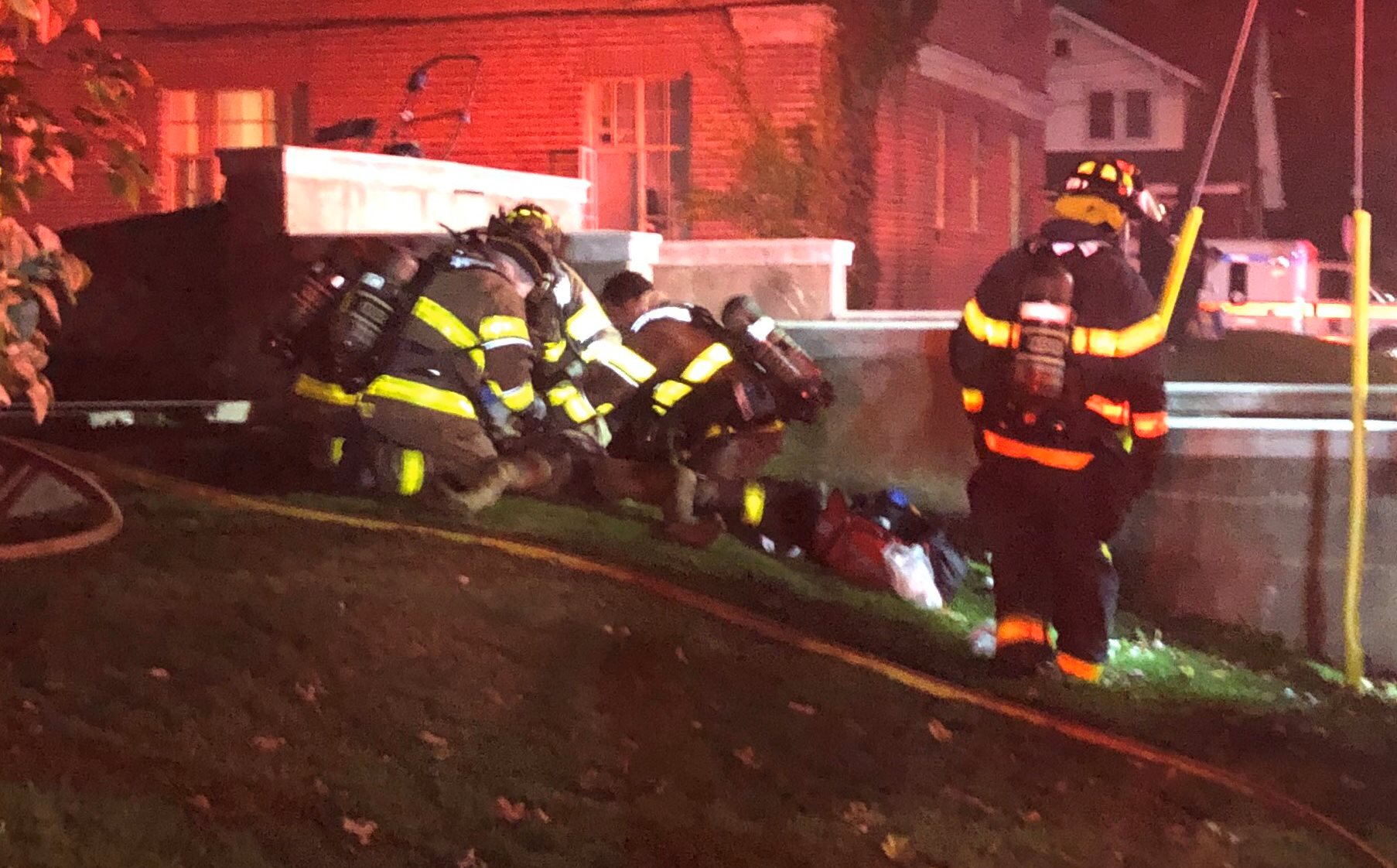 AM800 News arrived to witness firefighters pull a man from the apartment on to the lawn where they frantically tried to resuscitate the victim until Essex Windsor Emergency Services could arrive.