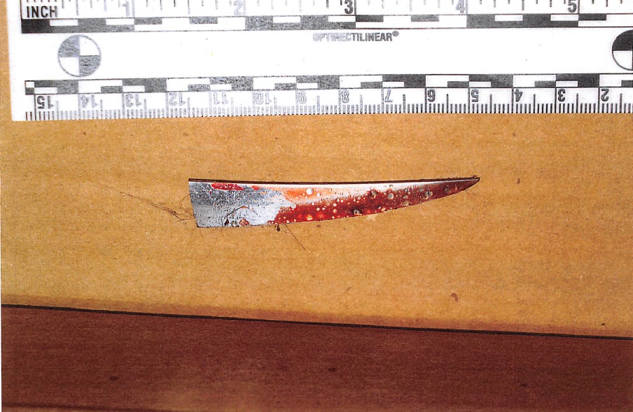 Knife tip found in the kitchen where Lesley Watterworth was found murdered, November 2, 2016 (Courtesy Ontario Superior Court)