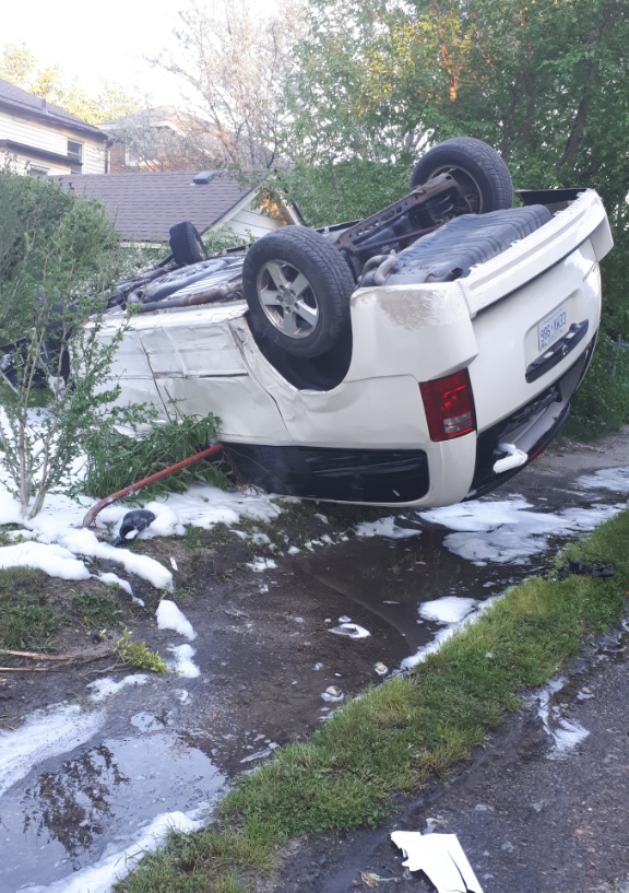 Around 7:30pm, a citizen flagged down police about a single vehicle crash in the alley between Victoria Ave. and Dougall Ave.