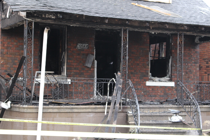 Crédit photo: Burned front porch of 227 Rankin Av (photo by AM800's Peter Langille)