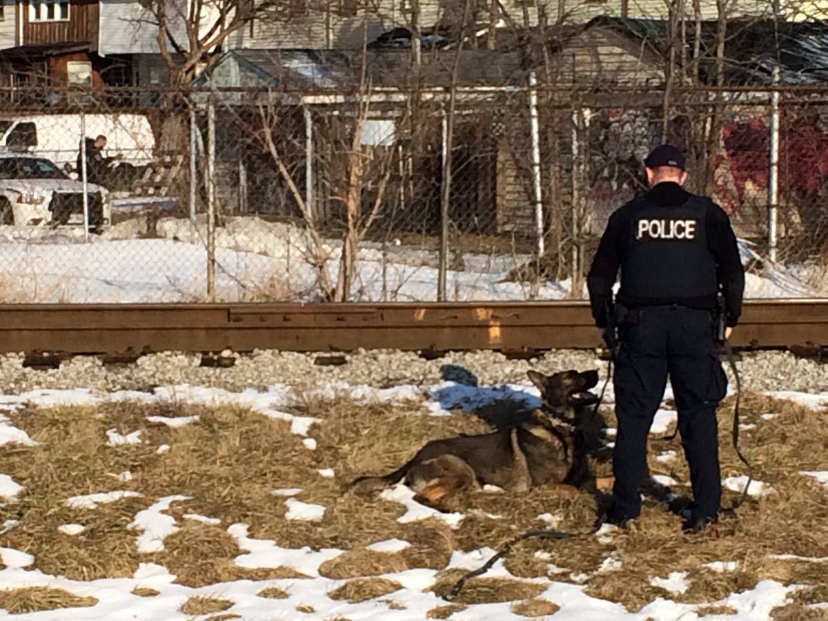 Windsor Police K9 Unit can be seen at a suspicious death at a home at 3275 Bloomfield Rd in west Windsor Sunday, February 18, 2018 (Photo by AM800's Zander Broeckel)