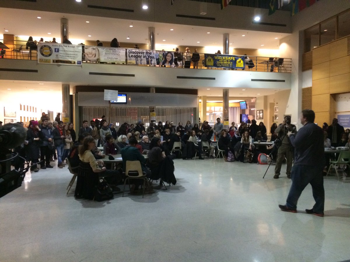 About 100 students rallied against the ban along with Trump's proposed US-Mexico border wall along with the approval of the Keystone and Dakota Access oil pipelines.