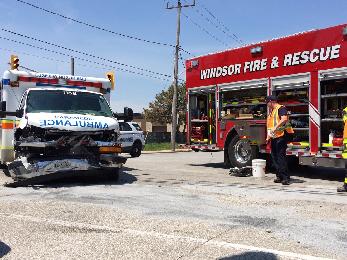 EMS tell me one person had to be extricated from the car involved. The paramedics in the ambulance were responding to a call when the collision happened. #cklw @CTVWindsor @AM800News pic.twitter.com/hgs1DU5TLu
