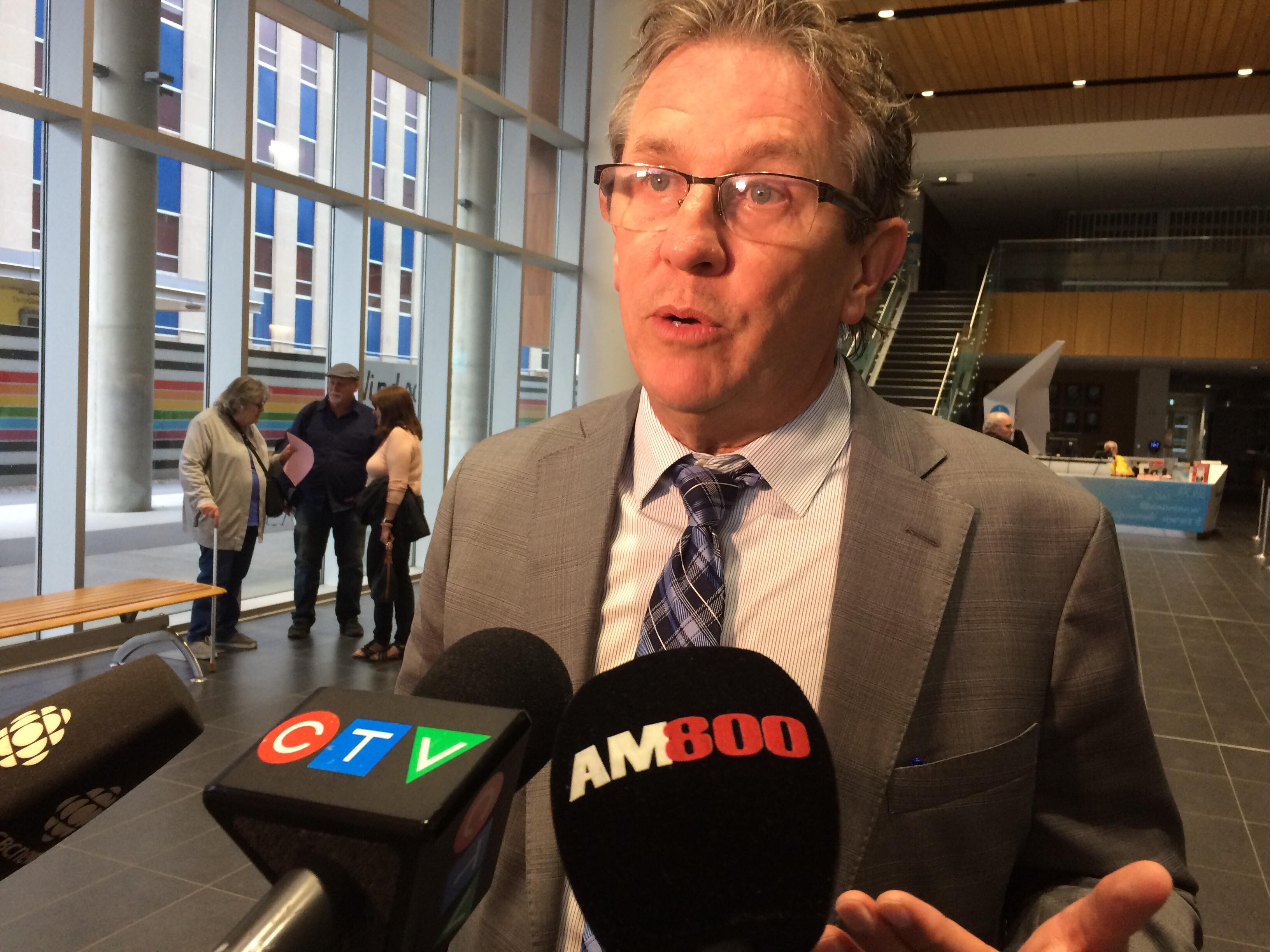 Local lawyer Richard Pollock speaks with reporters at a Windsor City Council meeting on May 27, 2019 (Photo by AM800's Zander Broeckel)