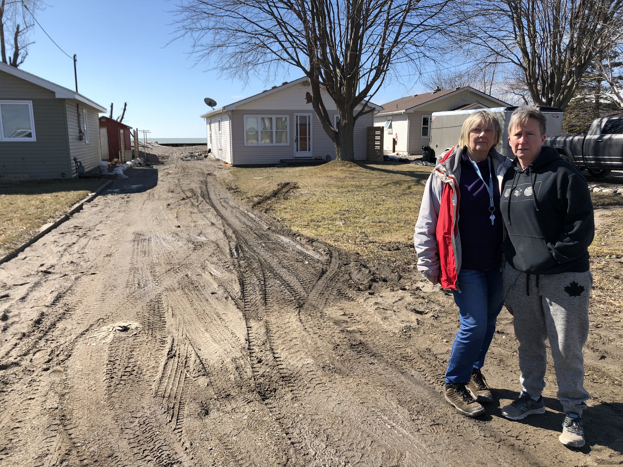 Deb Vint and Kim Snell outside their homes on Erie Shore Drive in Chatham-Kent on Saturday March 7, 2020. (Photo by CTV Windsor's Melanie Borrelli)