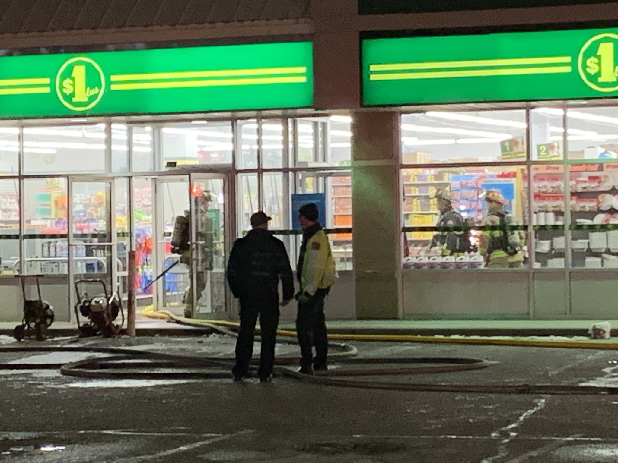 The scene of a fire at the Dollarama store at 300 Tecumseh Rd. E. on January 22, 2020 (Photo by AM800's Zander Broeckel)