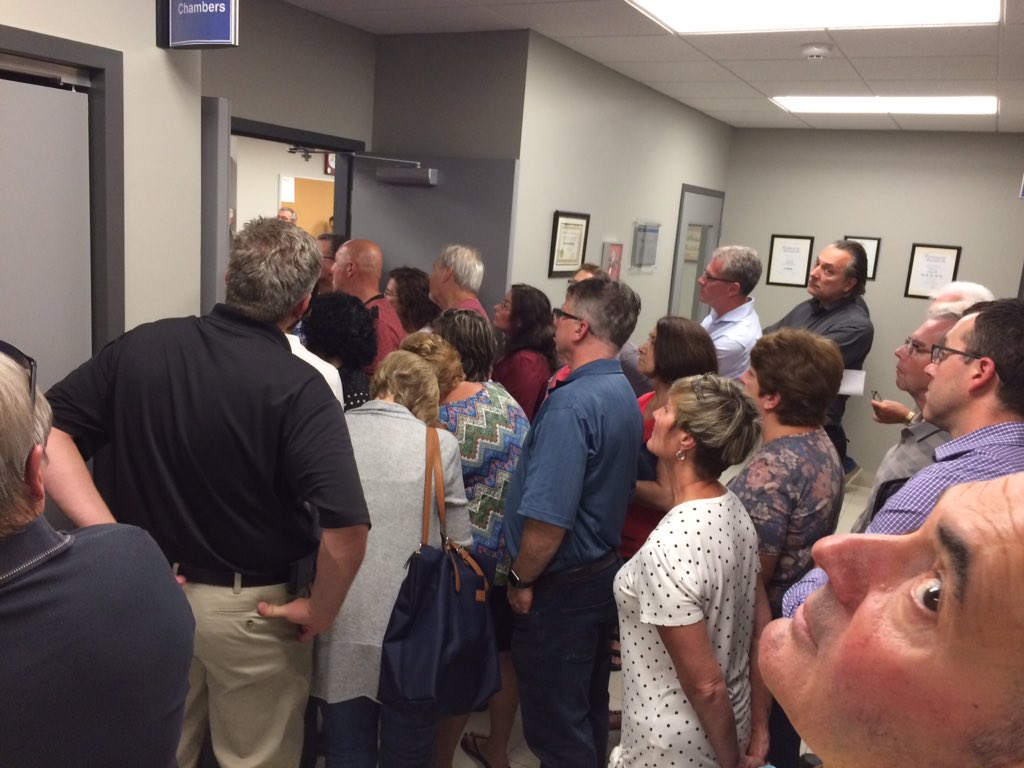 Kingsville residents attend a council meeting on proposed medical marijuana growing facilities on October 9, 2018 (Photo by AM800's Zander Broeckel)