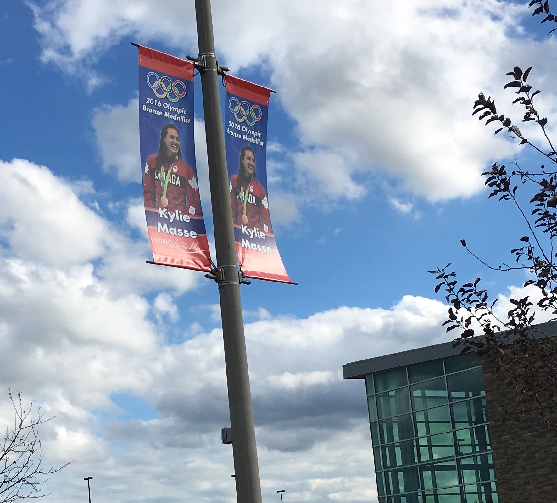 Banners honouring Olympic Bronze Medallist, and World Record holder Kylie Masse on Laurie Dr. in LaSalle on Friday Aug. 18. (Photo by AM800's Gord Bacon)