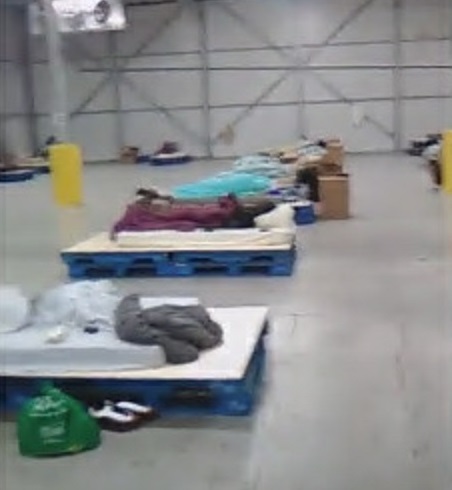 A video posted on the group's website shows a warehouse in Leamington, Ont. filled with mattresses placed on wooden pallets and nothing to walk on but concrete.