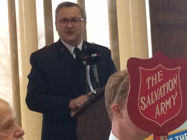 Salvation Army Major Paul Rideout, kettle campaign launch, Caboto Club, November 19, 2018 (by AM800's Peter Langille)