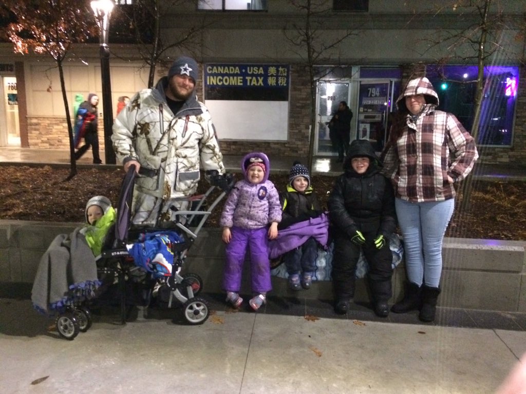 The Legault family arrives early at the 50th annual Santa Clause Parade despite rain and cold winds in downtown Windsor on Saturday December 1, 2018. (Photo by AM800's Gord Bacon)