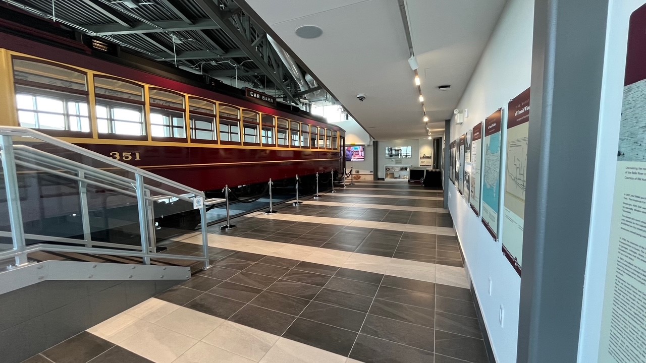 The 50-foot-long, 24,000-pound streetcar was restored by RM Automotive in Chatham-Kent and is the focal point of a display honouring the city's transportation past.
