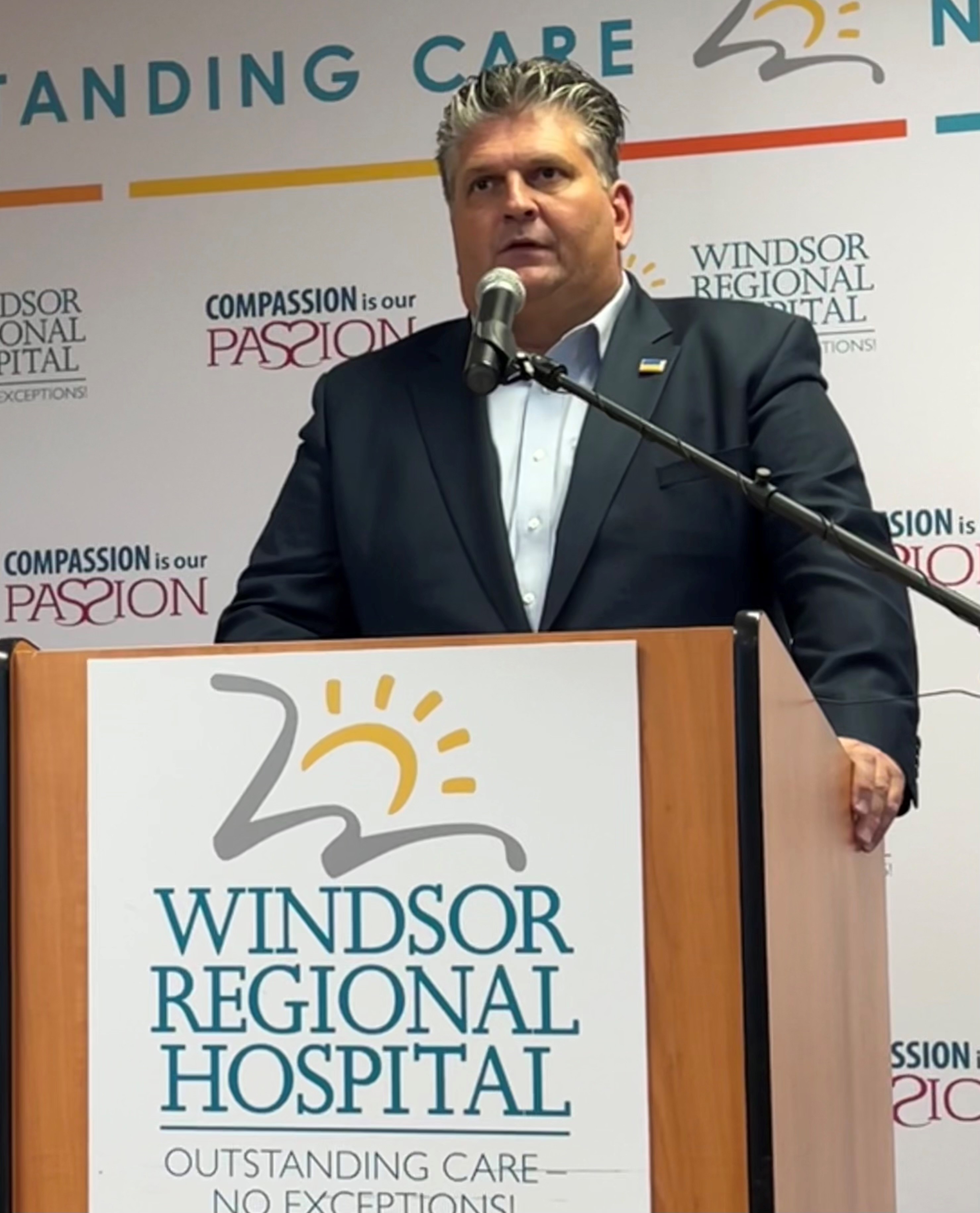 David Musyj, President and Chief Executive Officer of Windsor Regional Hospital, announces the Evolv Weapons Detection System will be installed at the hospital's two emergency departments. Oct. 18, 2023 (Photo: Rusty Thomson)
