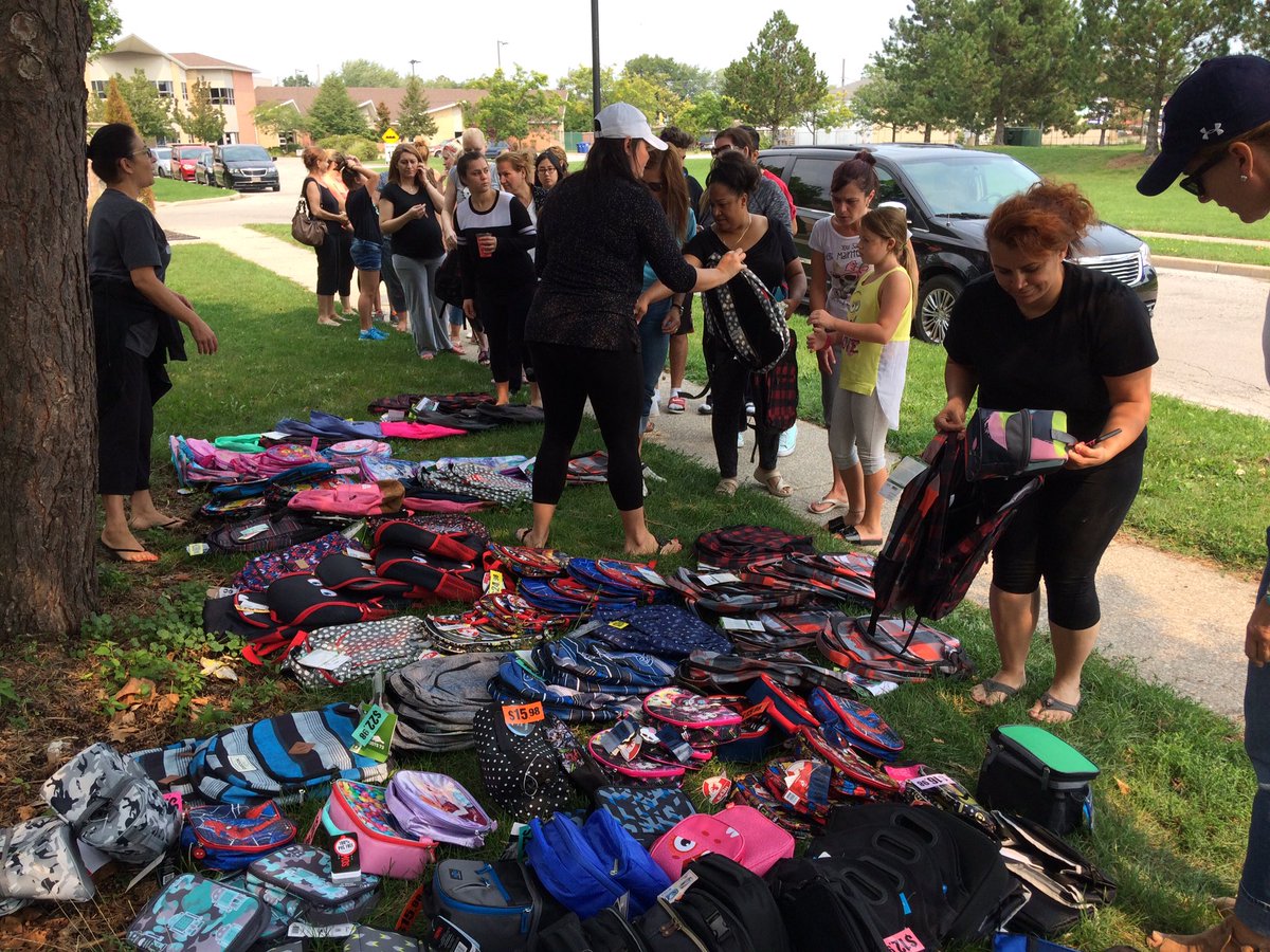 School supplies provided to kids affected by flooding in the Townhouses on Ypres Ave. near Central Ave. on Monday, Sept. 4. WFCU Credit Union spent $5,000 to make sure every kid had a backpack and supplies for the first day of school. (Photo by AM800'S Rob Hindi)