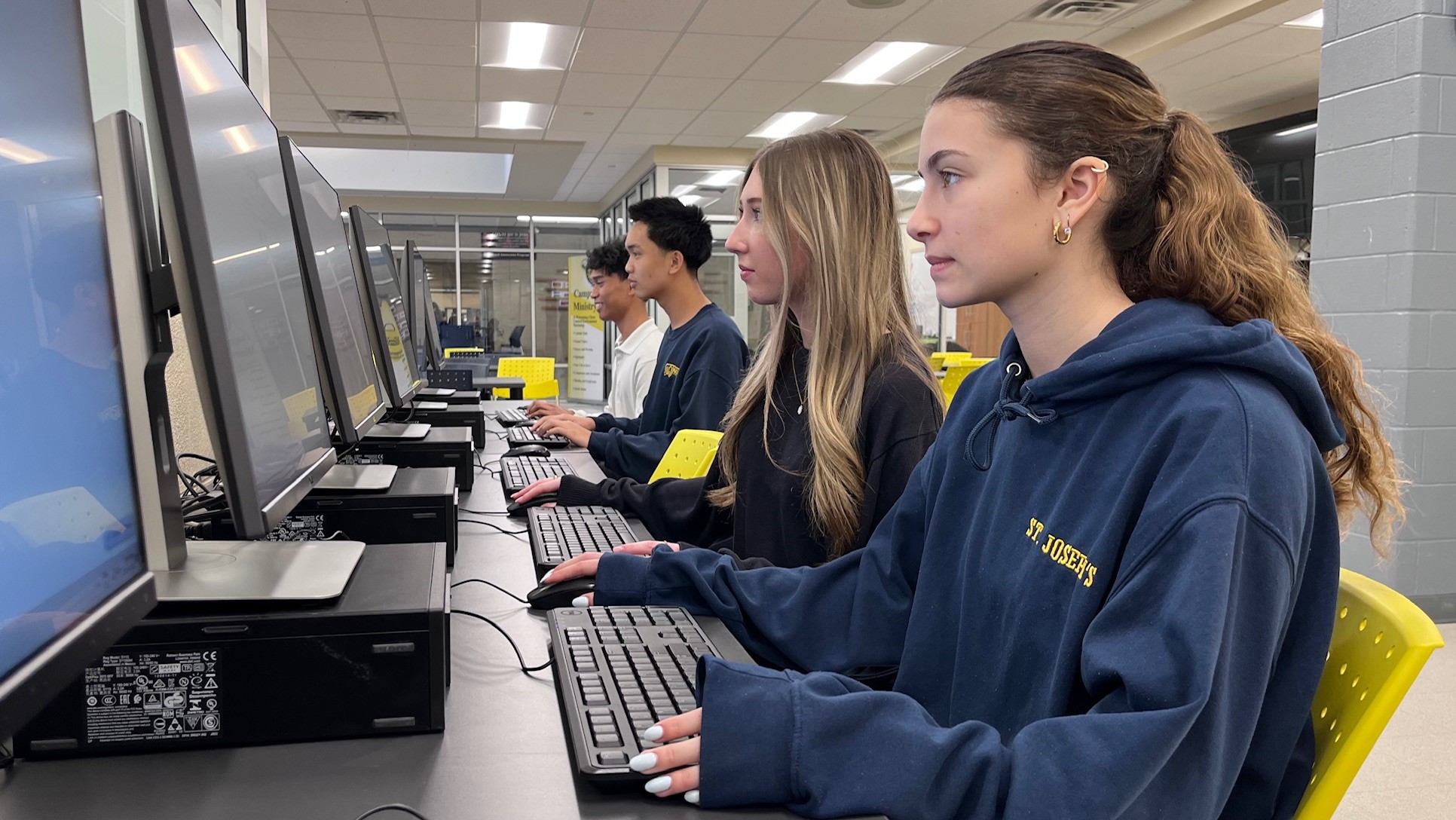"Sometimes, I know especially with math homework and stuff, there are certain programs with homework on them, but I can't fully access them all at home," she says. "But now with the availability of these computers at school, I'm able to fully do my math homework at school and not worry about it at home later."