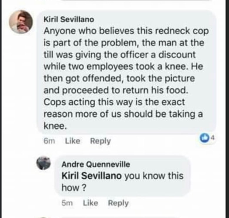A social media post is claiming a Windsor Police Services officer was refused service at a local fast food restaurant in the name of the Black Lives Matter movement.