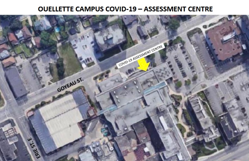 The location of Windsor Regional Hospital's COVID-19 Assessment Centre at its Ouellette campus (Photo courtesy of Windsor Regional Hospital)