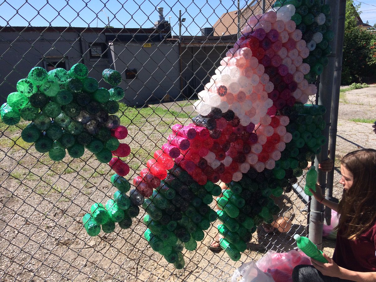 A fence behind a Wyandotte St. East business is now home to a unique piece of art work using recycled water bottles.