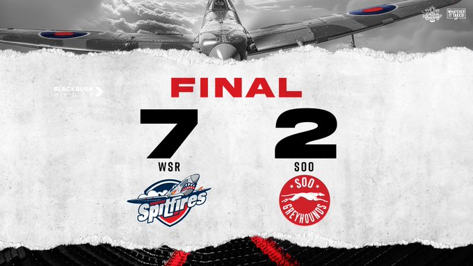The Spits downed the Sault Ste. Marie Greyhounds 7-2 Thursday night infront of a crowd of over 4,500 at the WFCU Centre.